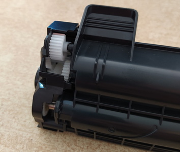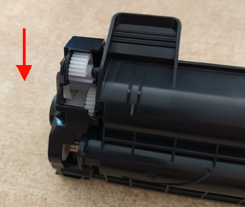 Το reset gear είναι ένα μικρό πλαστικό γρανάζι που βρίσκεται στο κάτω μέρος, της αριστερής πλευράς, του τόνερ.