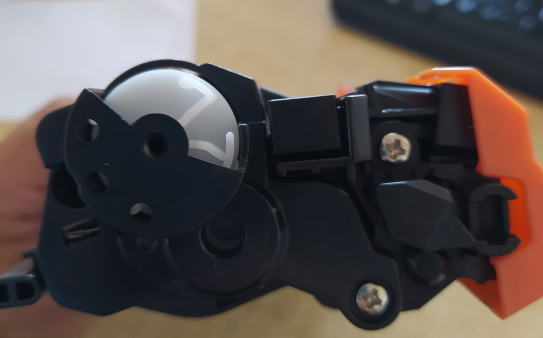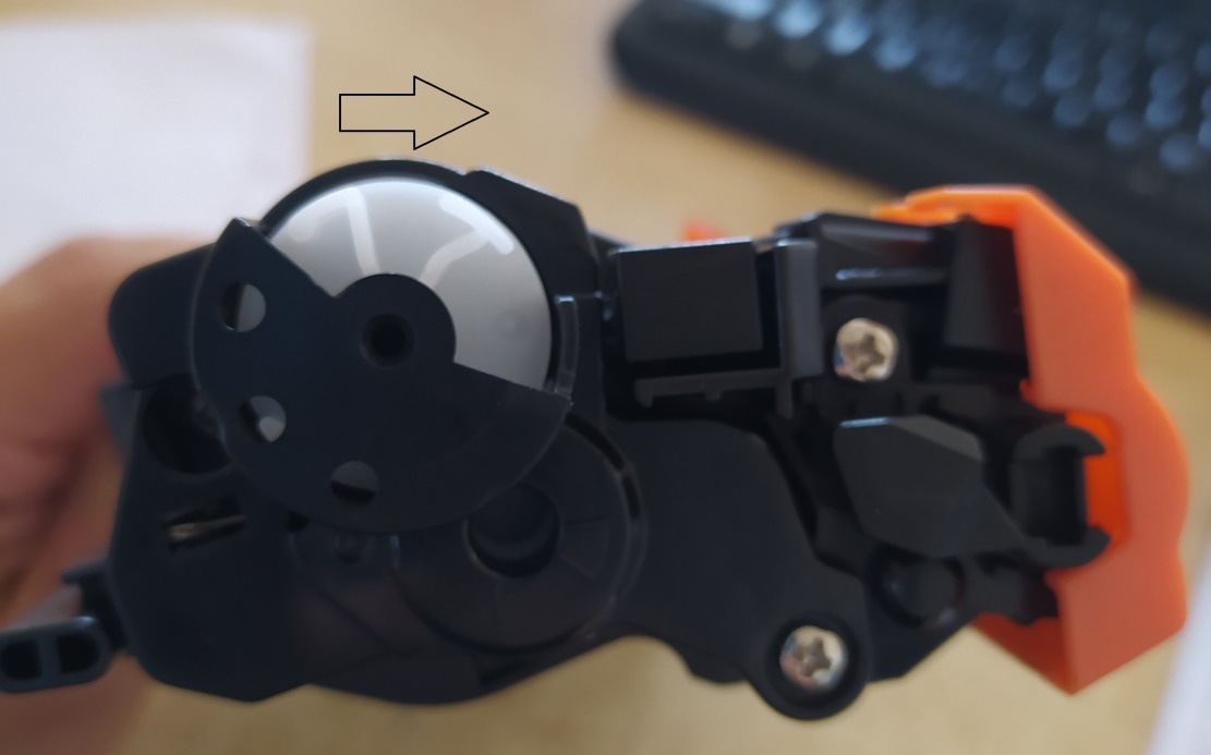 Το reset gear είναι ένα πλαστικό γρανάζι που βρίσκεται στο επάνω μέρος, της δεξιάς ή της αριστερής πλευράς, ανάλογα το τόνερ.